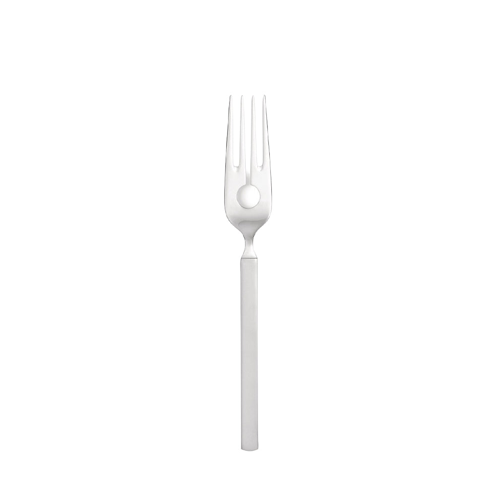 Diese elegante Fischgabel stammt aus der Dry-Serie von Alessi. Dry ist ein modernes und zeitloses Besteckset, entworfen von Achille Castiglioni. Es ist aus Edelstahl gefertigt und spülmaschinenfest. Die Gabel ist poliert, der Griff matt.