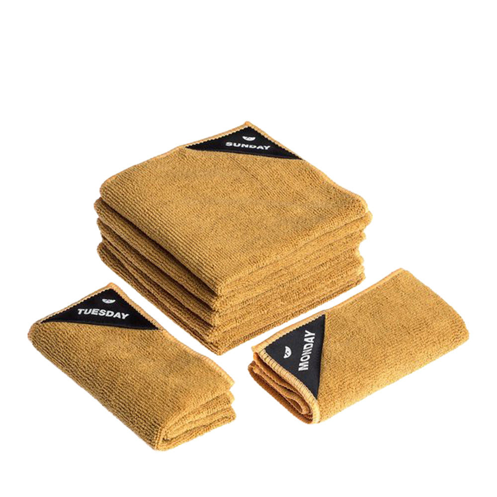 Wir kennen es alle: Geschirrtücher sind ein idealer Nährboden für Bakterien und riechen nach einem Tag nicht mehr frisch. Diese stilvollen, feinen Mikrofasertücher von Klud in Currygelb erinnern Sie täglich daran, ein sauberes Tuch zu verwenden. Wunderbar hygienisch! Das 7-teilige Set – eines für jeden Tag – ist mit den Wochentagen beschriftet. Die Mikrofasertücher bestehen aus 80 % Polyester und 20 % Polyamid und sind ideal für den täglichen Gebrauch. Die Geschirrtücher haben die Maße 30 x 30 cm. Waschen Sie die Tücher bei maximal 40 Grad Celsius und trocknen Sie sie nicht im Wäschetrockner.