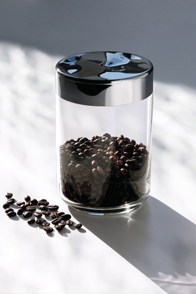 De Julieta keukenbus van Alessi is gemaakt van roestvrij staal en glas. Door de siliconen ring in het deksel blijft de inhoud lekker vers. De pot heeft een inhoud van 100 cl en is vaatwasbestendig. Ontworpen door Lluis Clotet en wordt geleverd in een mooie cadeauverpakking.