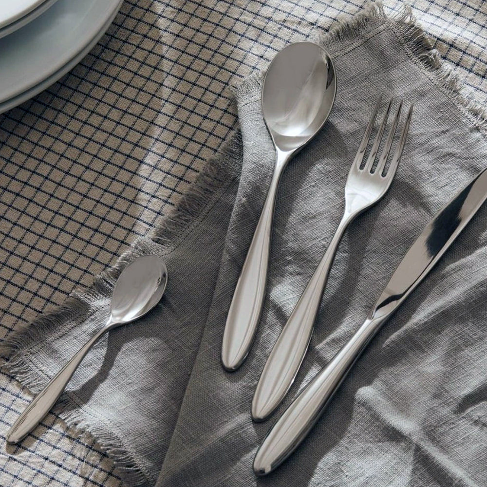 De 24-delige Alessi Mami bestekset is ontworpen door Stefano Giovannoni en gemaakt van gepolijst roestvrij staal. De Mami collectie is eigentijds en modern, maar tijdloos door het subtiele design. De set bestaat uit 6 tafellepels, 6 tafelvorken, 6 tafelmessen en 6 koffielepeltjes. Het is zeer duurzaam, kwalitatief en vaatwasbestendig. Wordt geleverd in een mooie cadeauverpakking.