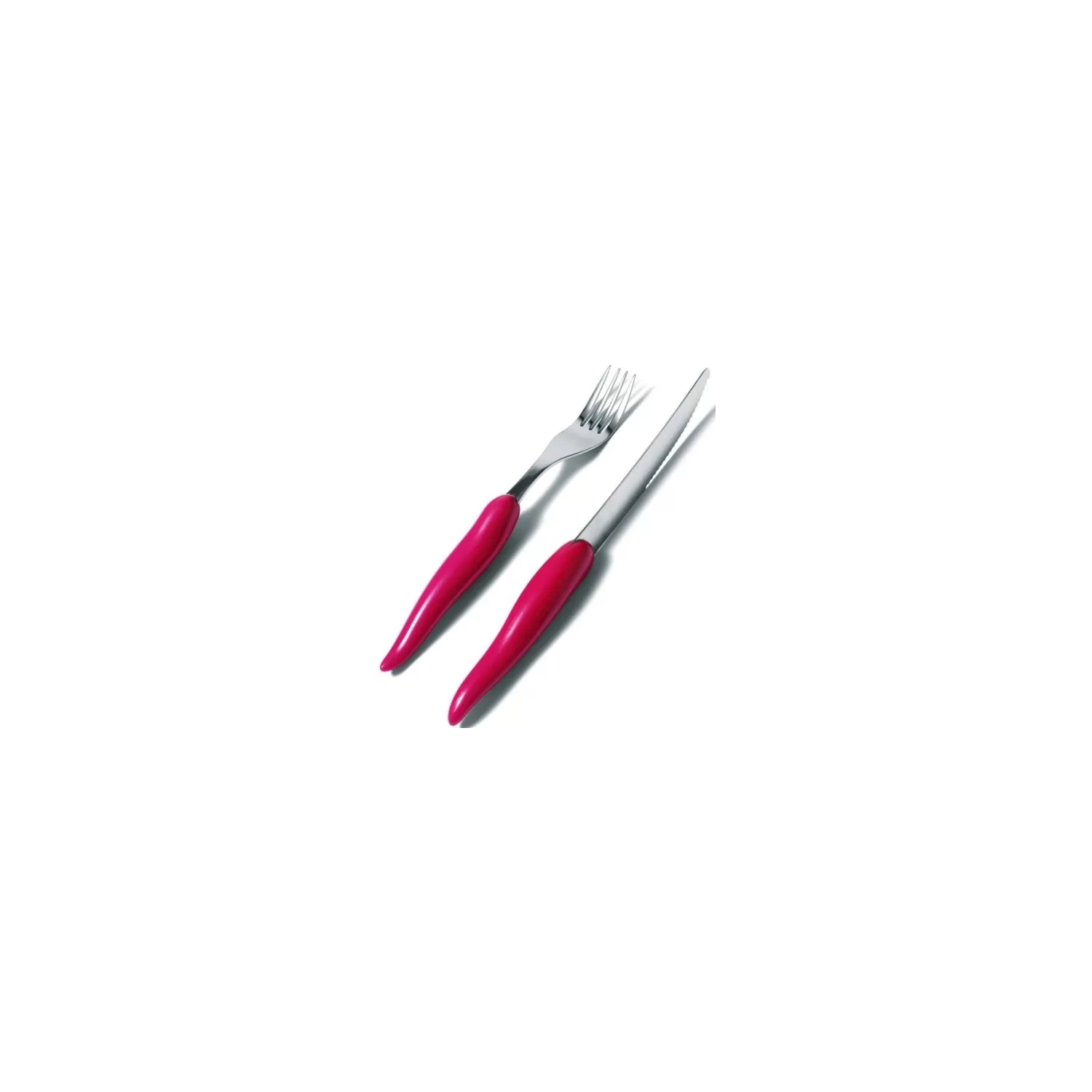 De Alessi Pummaroriella Posate Pizza Couvert is een bestekset bestaande uit een mes en vork met handgrepen in de vorm van rode chilipepers. Deze set is ontworpen door Massimo Giacon en brengt een speelse sfeer aan tafel. Het bestek is gemaakt van duurzaam roestvrij staal en is geschikt voor dagelijks gebruik en de vaatwasser.