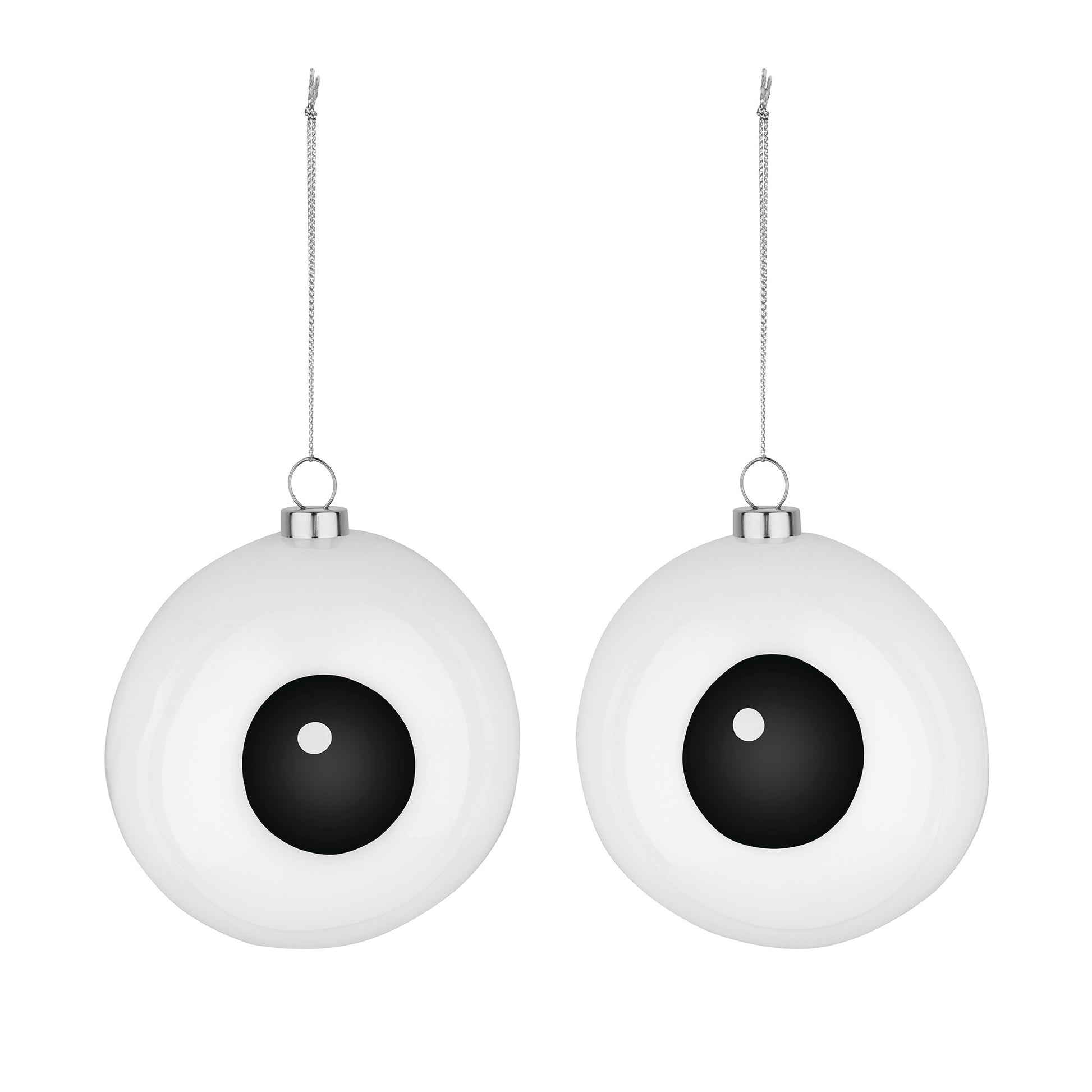 De Carol Treebies van PlayLab, Inc. voor Alessi brengen speelse magie naar je kerstboom. Deze handgemaakte glazen kerstballen zijn ontworpen als grote, expressieve ogen die nieuwsgierig en levendig kijken. De set van twee ballen is zorgvuldig met de hand beschilderd en voorzien van zilverkleurige ophanglusjes, waardoor ze zowel decoratief als persoonlijk aanvoelen. Met hun opvallende design en humoristische karakter zijn de Carol Treebies een verrassend accent dat iedere feesttafel of kerstboom bijzonder maakt.