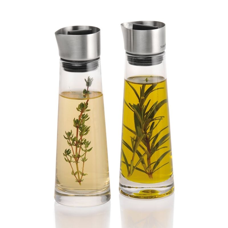 De Alinjo olie-& azijnset van Blomus staat prachtig op de gedekte tafel. De glazen flesjes hebben een inhoud van 150 ml en zijn voorzien van licht gevormde schenktuitjes. De doppen zijn daarnaast voorzien van een antidrupsysteem. Voeg wat olie of azijn toe aan het gerecht zonder te knoeien. De set wordt geleverd in een mooie cadeauverpakking.