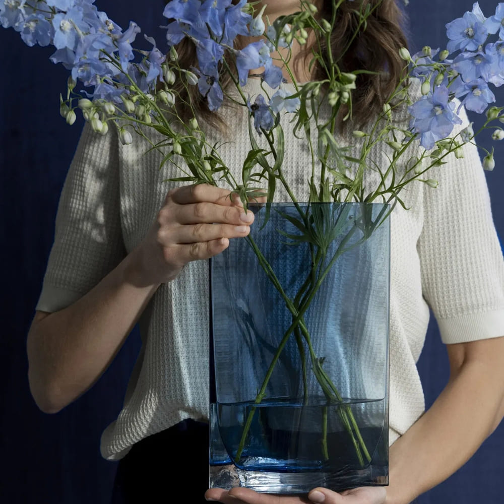 De Blomus Duasis Vaas Ocean Cavern Medium brengt direct een verfijnde en stijlvolle sfeer in ieder interieur. Deze elegante Blomus vaas in de diepe kleur Ocean Cavern is gemaakt van mondgeblazen glas en ontworpen door Ilja Huber. Het bijzondere ontwerp combineert hoekige lijnen met organische vormen, wat zorgt voor een opvallend en sculpturaal effect.