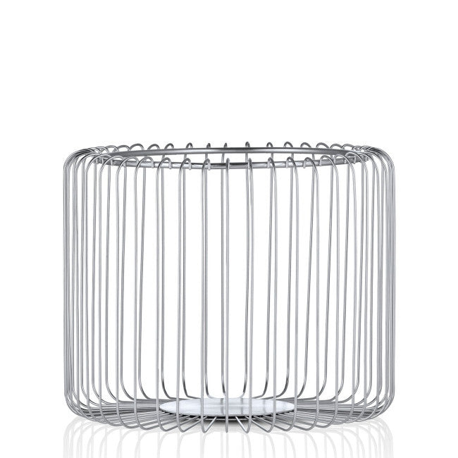 Duidelijke structuur geeft de mand lichtheid en wordt een decoratief object dat in bijna elk huis past. Verkrijgbaar in zwart en moonbeam in een matte poedercoating of in chroom. Alle drie de versies zijn verkrijgbaar in twee maten.