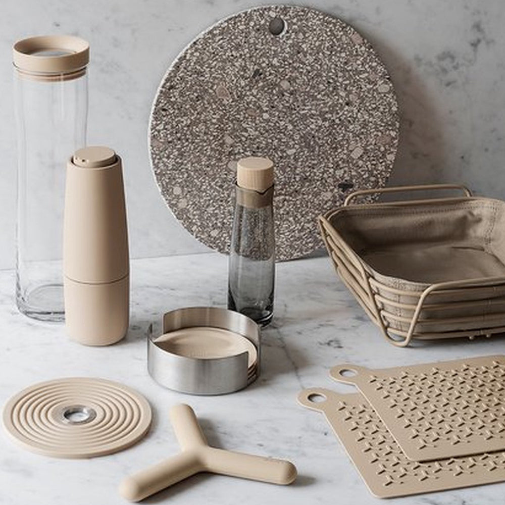 De zout- en pepermolen SALPI van gepolijst roestvast staal heeft precies genoeg pit voor een functioneel design. Daarbij brengen twee verschillende beigetinten kleurrijke accenten op tafel. Via het steekmechanisme kunnen de strooiers geopend en gevuld worden. De maalgraad kan worden ingesteld van heel fijn tot grof. De set is tevens verkrijgbaar in grijstinten, dat prima met de blomus-serviezen te combineren is.