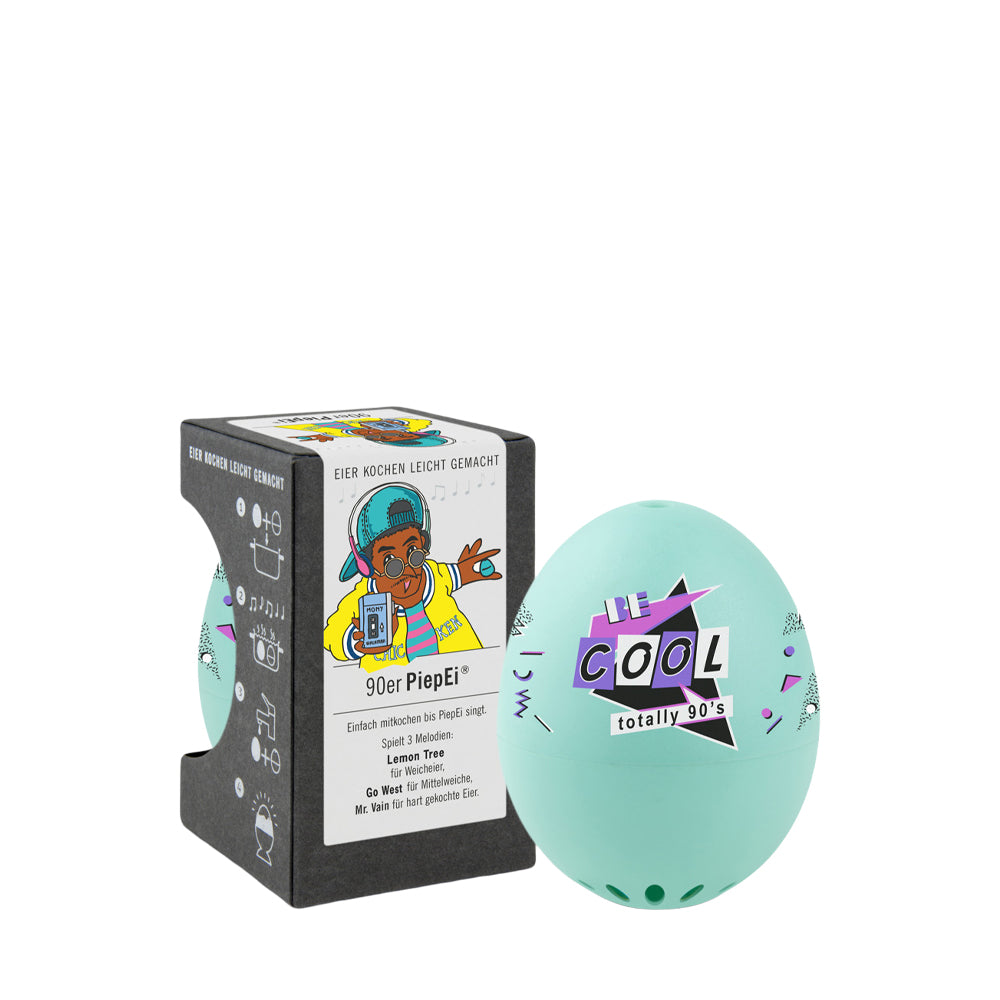 Altijd het perfect gekookte eitje met het 90's Hits PiepEi van Brutus Kookt. Bewaar je PiepEi bij de eieren zodat het dezelfde temperatuur heeft, kook het PiepEi met de eieren mee en het zal diverse melodietjes afspelen: ''Lemon Tree'' (voor zachtgekookt), "Go West" (middel), "Mr. Vain" (hardgekookt).