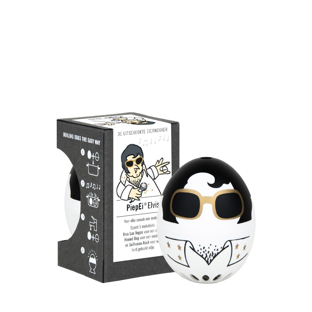 Altijd het perfect gekookte eitje met het PiepEi Elvis van Brutus Kookt! Bewaar je PiepEi bij de eieren zodat het dezelfde temperatuur heeft, kook het PiepEi met de eieren mee en het zal diverse melodietjes afspelen: 'Viva Las Vegas' (voor zachtgekookt), 'Hound Dog' (middel) en 'Jailhouse Rock' (hardgekookt).