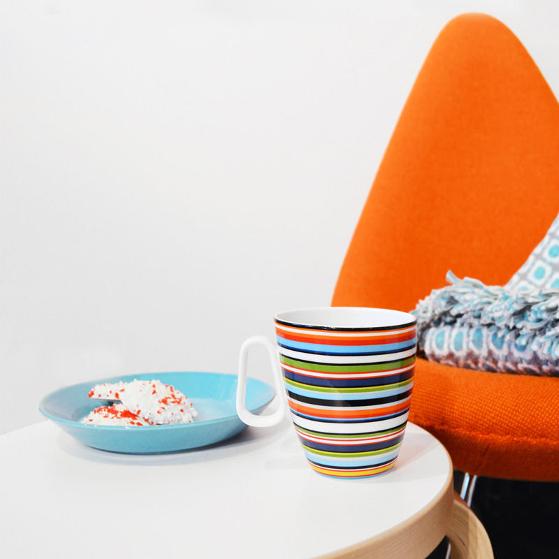 De Origo-lijn is ontworpen door Alfredo Häberli. De kleurrijke streeppatronen en eenvoudige vorm zorgen voor een perfect servies geschikt voor iedere gelegenheid en goed te combineren met de andere serviezen van Iittala. Het servies is naast magnetron- en vaatwasbestendig ook geschikt voor de oven en vriezer.