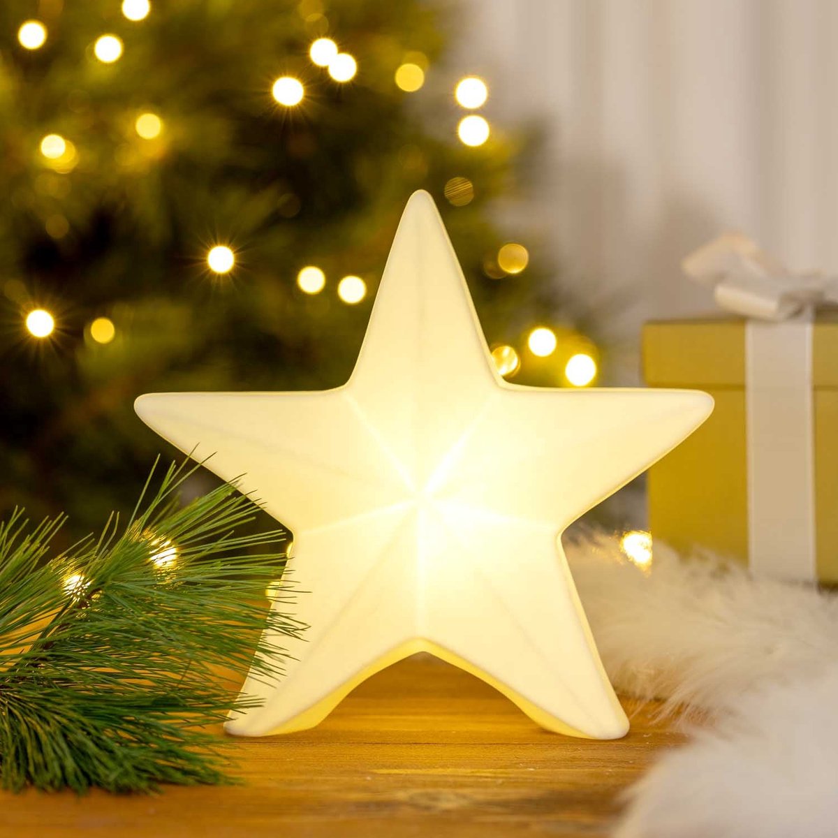 De Leonardo Candela Ster met LED-verlichting van 19 cm is een sfeervolle porseleinen decoratie in de vorm van een ster. De geïntegreerde LED-lamp zorgt voor een warme, flikkerende gloed die perfect is voor de feestdagen. Dankzij het elegante ontwerp en veilige batterijwerking is deze ster ideaal voor elk interieur.