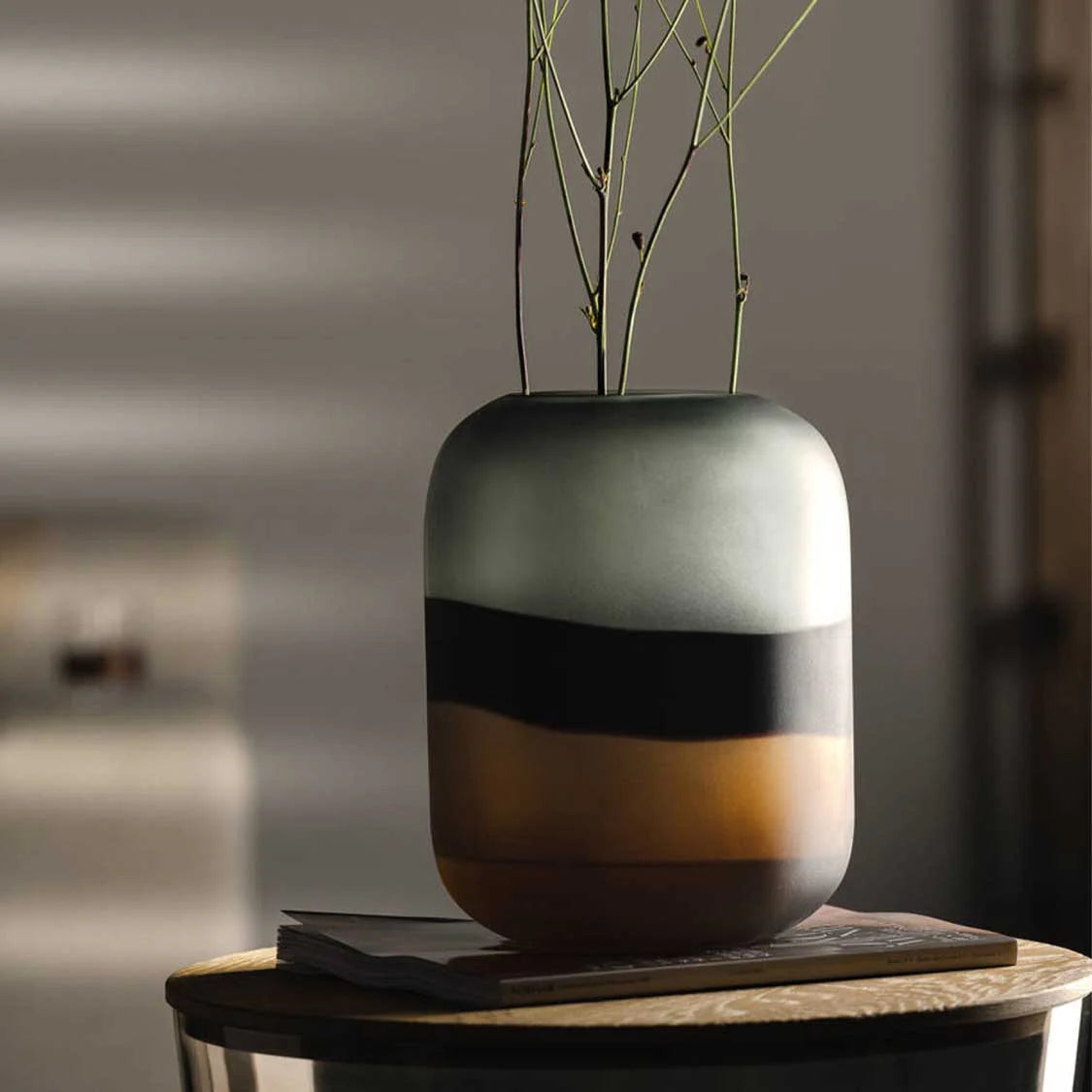 De Corso Sabbia‑vaas van Leonardo is met de hand geblazen en heeft warme aardetinten zoals bruin, grijs en zwart.