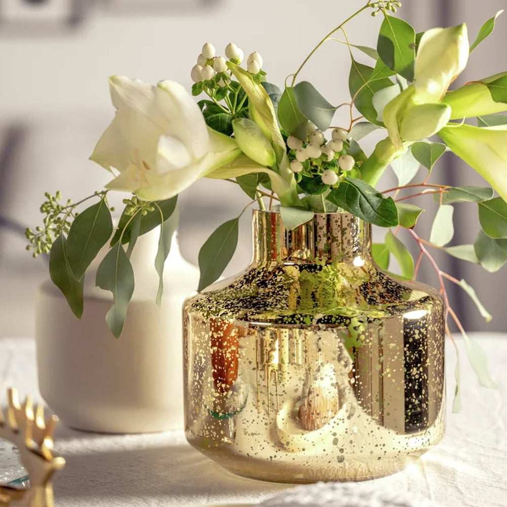 Een brede buik en wijde hals staan garant voor een moderne en frisse eyecatcher. Gemaakt van hoogwaardig materiaal voor een stijlvolle uitstraling en hoge duurzaamheid. Met zijn unieke oppervlak is het een geweldige decoratieve aanvulling op elke woonruimte.