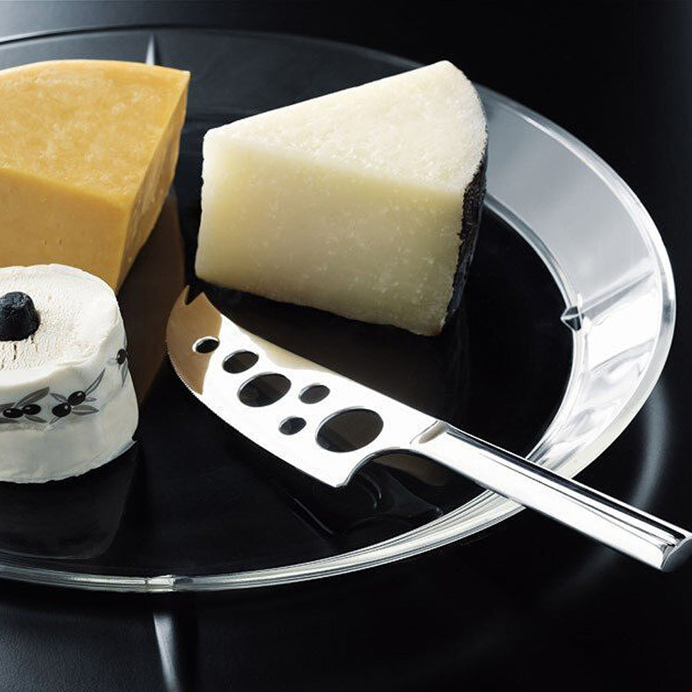 Het kaasmes van Rosendahl uit de Grand Cru collectie is gemaakt van roestvrij staal en is dan ook vaatwasbestendig. Het lemmet is voorzien van gaatjes, zodat de kaas niet aan het mes blijft plakken. Het mes ligt door het gewicht en goede vormgeving van het handvat prettig in de hand.