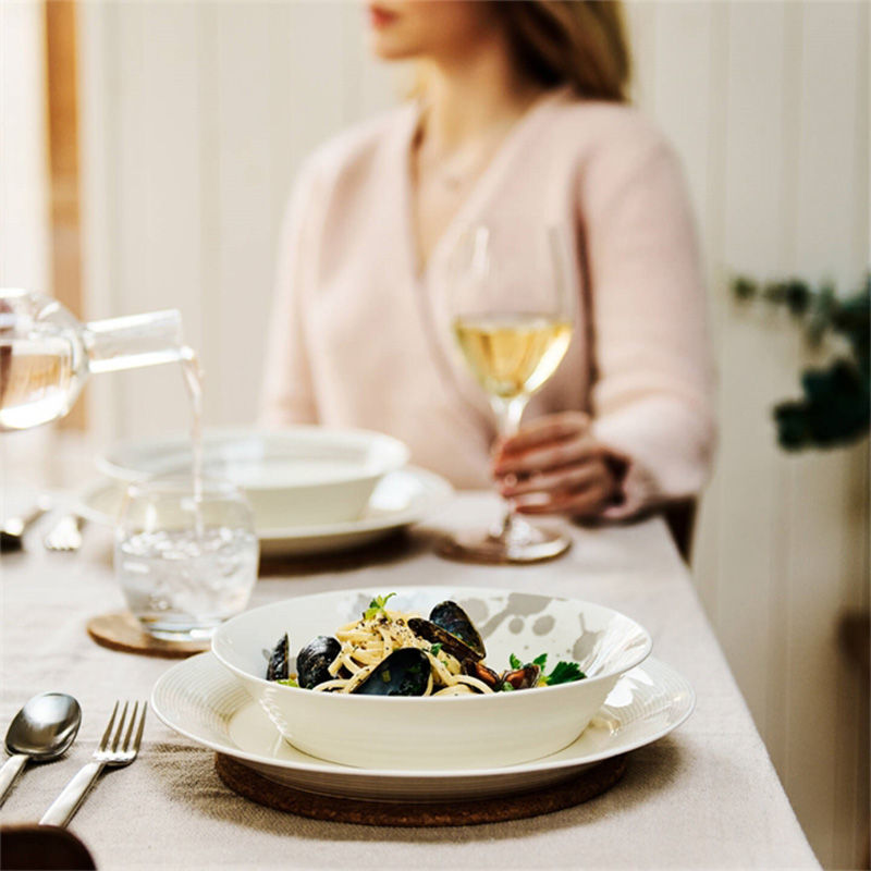 Deze set bestaat uit 4 pastaborden en zijn magnetron- en vaatmachinebestendig. Deze set van vier verschillende grijze pasta borden, zijn zeer veelzijdig en niet alleen voor de pasta, maar ook voor ontbijt, lunch en diner te gebruiken. Gemaakt van hoogwaardig porselein in vier verschillende patronen geïnspireerd op de oceaan, splash, dot line en brush.