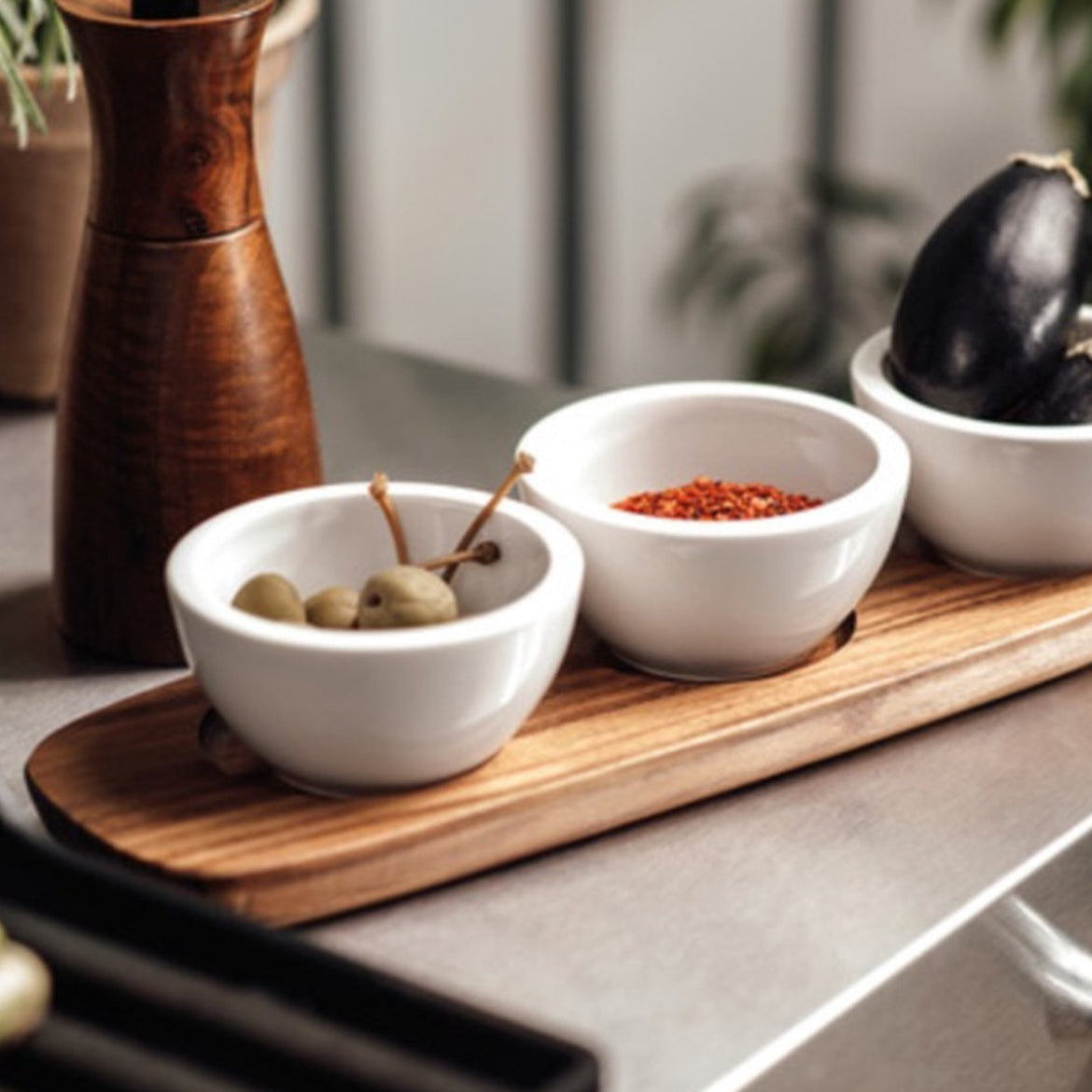 Artesano Original staat voor natuurlijke vormen en de hoogste kwaliteit. Dit dienblad voor dipschaaltjes mag niet ontbreken in uw Artesano collectie. Het dienblad is gemaakt van zuurzam acaziahout. Er kunnen drie dipschaaltjes op gepresenteerd worden. Deze tijdloze schaal is veelzijdig inzetbaar. Een tijdloos serveerplateau voor uiteenlopende gelegenheden.