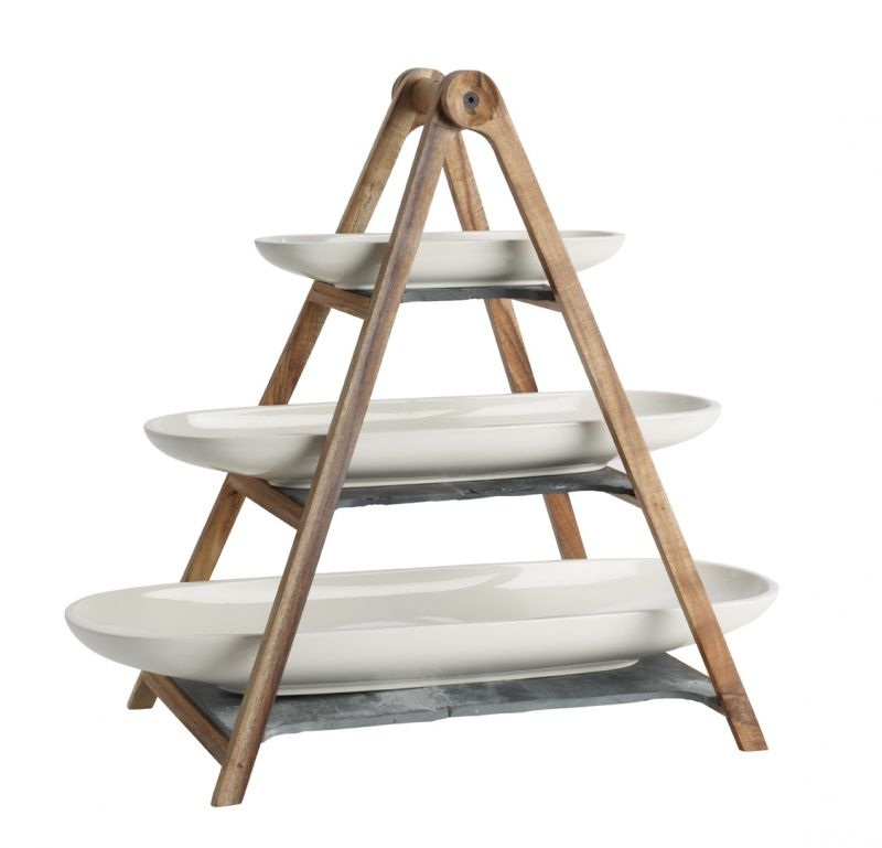 Deze mooie Artesano Original etagère is gemaakt van hout met leistenen plankjes. De schalen die op de etagère passen zijn de Artesano Original olijven-, baguette- en fruitschaal. De etagère heeft een moderne uitstraling door het materiaalgebruik en kan na gebruik worden ingeklapt en opgeborgen. Artesano Original bestaat uit 32 stuks, geschikt voor elke culinaire gelegenheid. De karaktervolle, maar pure vormen en uitgesproken randen gaan perfect samen met de hedendaagse materiaalmix van zuiver wit porselein, robuust acaciahout, kurk en leisteen. De speelse interactie tussen de verschillende materialen biedt net dat ietsje meer en weerspiegelt perfect vakmanschap. Dankzij de archaïsche vormgeving van Artesano Original wordt moderne country chic een must op elke tafel.