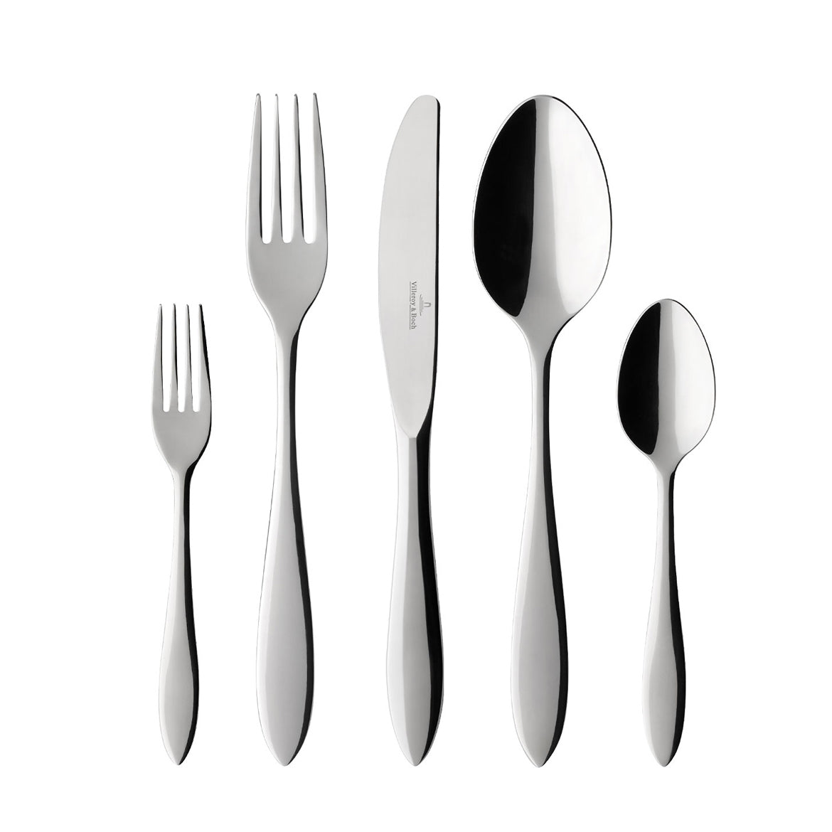 Prachtige bestekset Arthur van Villeroy & Boch. Dit 30-delige bestek heeft een modern en tijdloos ontwerp. Het bestek is vervaardigd uit roestvrij staal en kan na gebruik worden gereinigd in de vaatwasser. De set bestaat uit: 6 tafelvorken, 6 tafelmessen, 6 tafellepels, 6 koffielepels, 6 gebaksvorkjes.