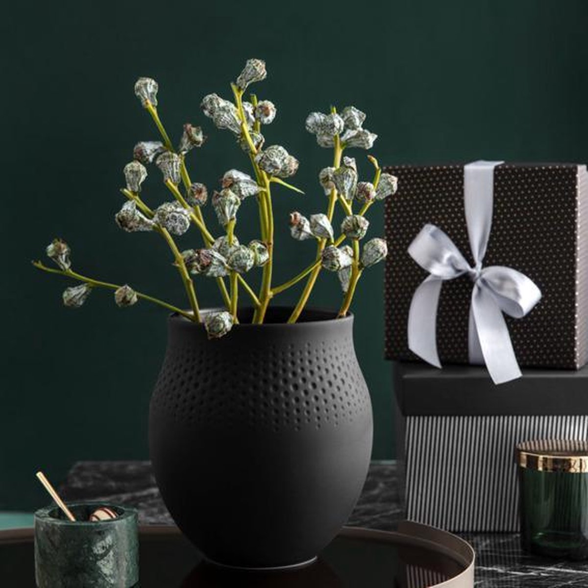 Deze mooie, zwarte Perle vaas komt uit de Manufacture Collier collectie van Villeroy & Boch en is gemaakt van premium porselein. De vaas is voorzien van een bolvormige structuur in de bovenste rand van de vaas. Een mooie chique vaas voor op tafel of dressoir.