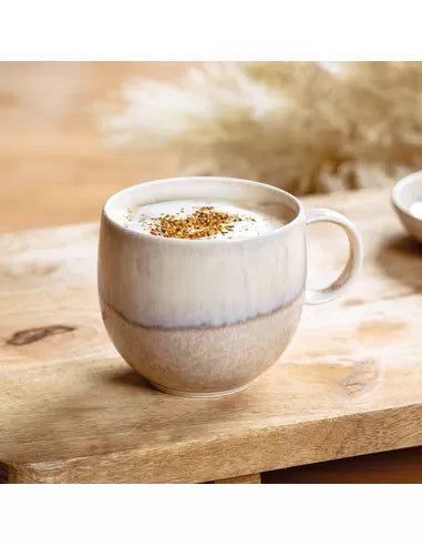 De Villeroy & Boch Like Perlemor Sand mok is gemaakt van porselein met een zandkleurige, parelmoerachtige glans.